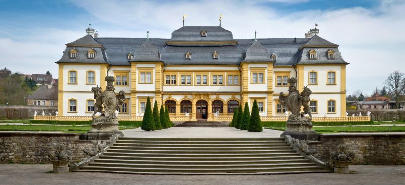 Im Mai entfaltet sich rund um das Schloss die ganze Pracht des Blühenden Barocks. Auf rund 30 Hektar laden fantasievoll gestaltete Gartenanlagen zu einem Spaziergang durch barocke und landschaftlich inspirierte Gartenkunst ein. Symmetrische Blumenbeete, Wasserspiele und versteckte Gartenpavillons schaffen eine farbenfrohe Kulisse.