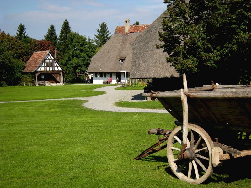 Am Nachmittag besuchen Sie das Museumsdorf Kürnbach. Das weitläufige Freilichtmuseum vermittelt einen lebendigen Eindruck vom bäuerlichen Alltag in Oberschwaben. Auf dem Gelände wurden originalgetreu übertragene Gebäude aus fünf Jahrhunderten wiederaufgebaut – darunter Bauernhäuser, Mühlen, Werkstätten und ein Schulhaus.