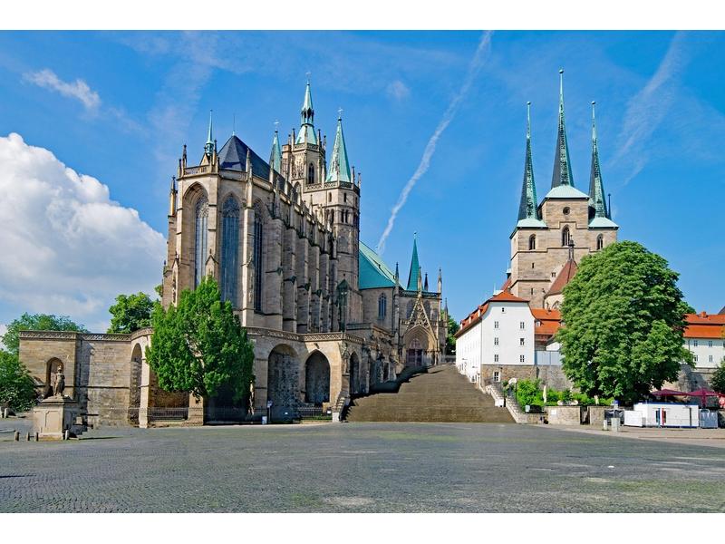 Den heutigen Tag widmen Sie einem Besuch der Landeshauptstadt Thüringens, die Sie bei einem Stadtrundgang von ihrer schönsten Seite kennenlernen. Die historische Altstadt zählt zu den größten und besterhaltenen mittelalterlichen Stadtzentren Deutschlands. Sie sehen den Fischmarkt mit seinen reich verzierten Renaissancegebäuden sowie das beeindruckende Sakralensemble auf dem Domberg. Während der mächtige Dom St. Marien mit seinen gotischen Hochchorfenstern beeindruckt, schließt sich direkt daneben die filigrane Kirche St. Severi an, deren klare Linien und dreischiffige Hallenstruktur einen spannenden architektonischen Kontrast bildet.